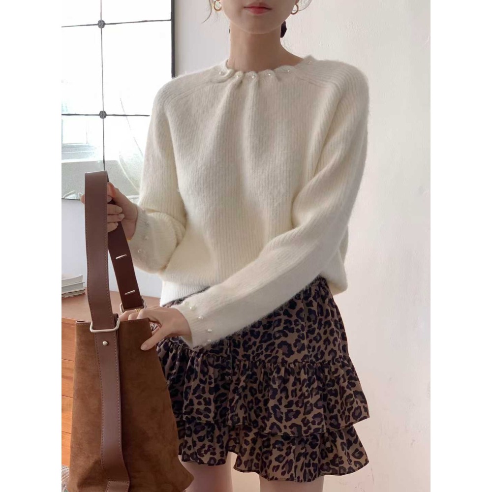 202511正韓🇰🇷氣質優雅 領口袖口鑲嵌珍珠 素色針織毛衣上衣 3色 聖誕節 跨年 過年 約會穿搭