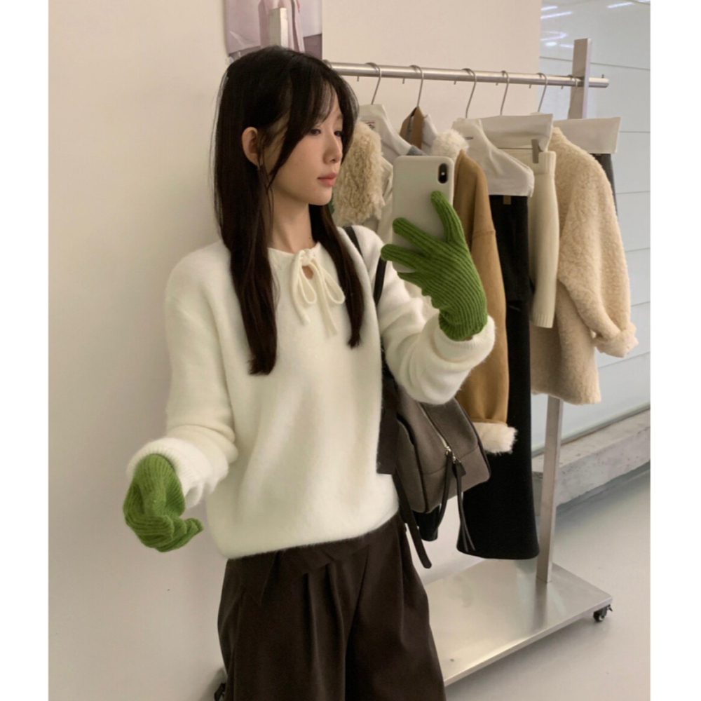 202511小資💘柔軟親膚 10%兔毛 綁帶簡約溫柔毛衣 7色