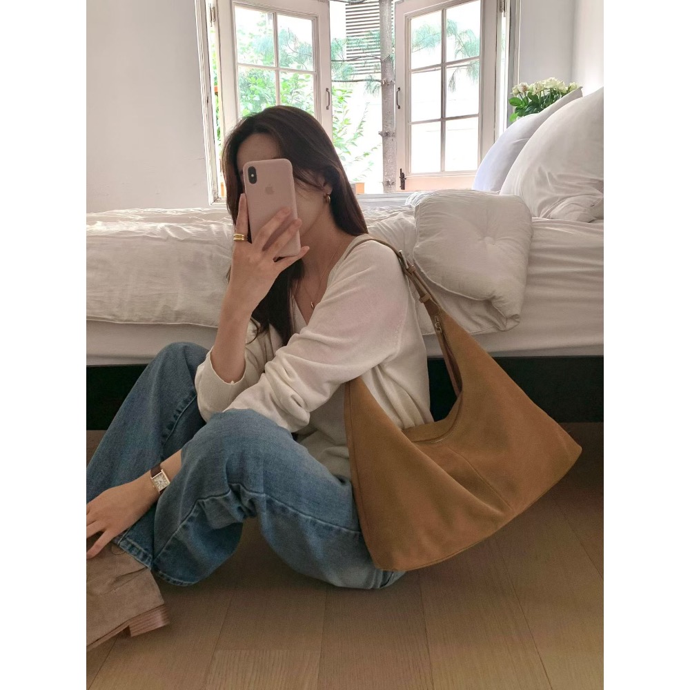 202512正韓🇰🇷真皮 hobo 真皮 麂皮 2色 大容量飯糰包 肩背包 斜背包 側背包