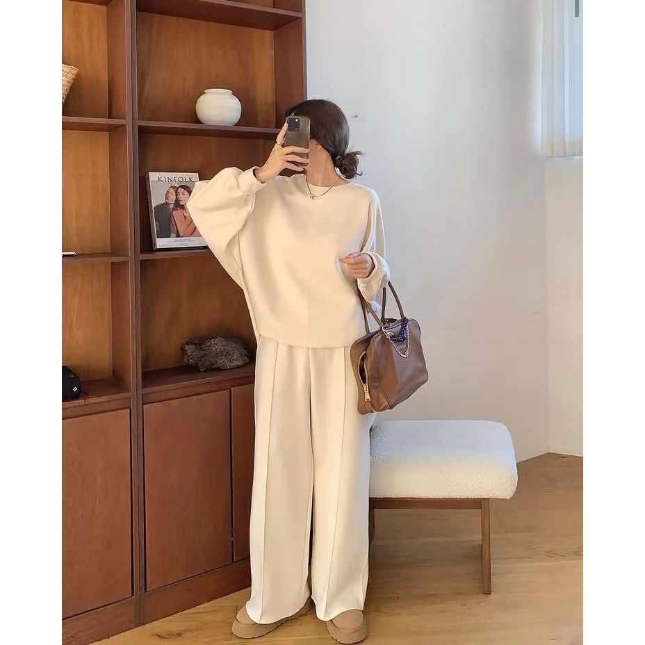 202512正韓🇰🇷簡約高級鬆弛感 棉質套裝 顯瘦飛鼠袖 慵懶百搭黑白