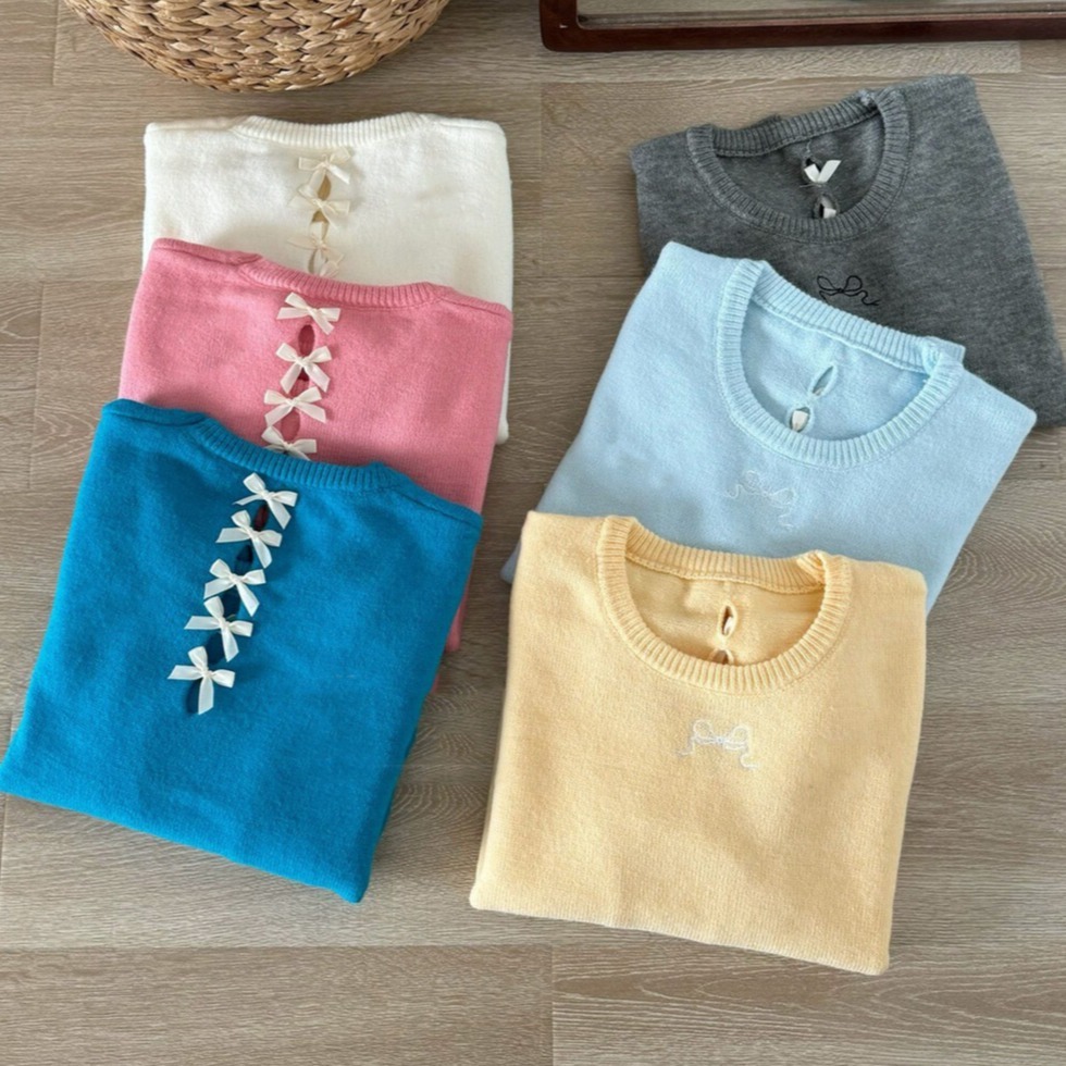 台中現貨 小眾設計款後背立體蝴蝶結六色針織衫 內搭 寶寶藍