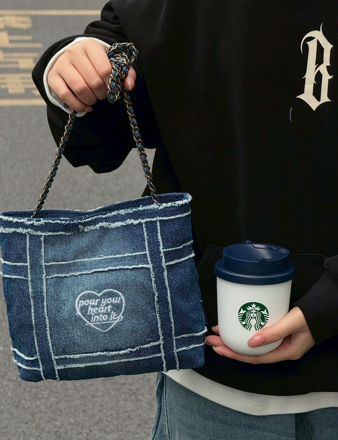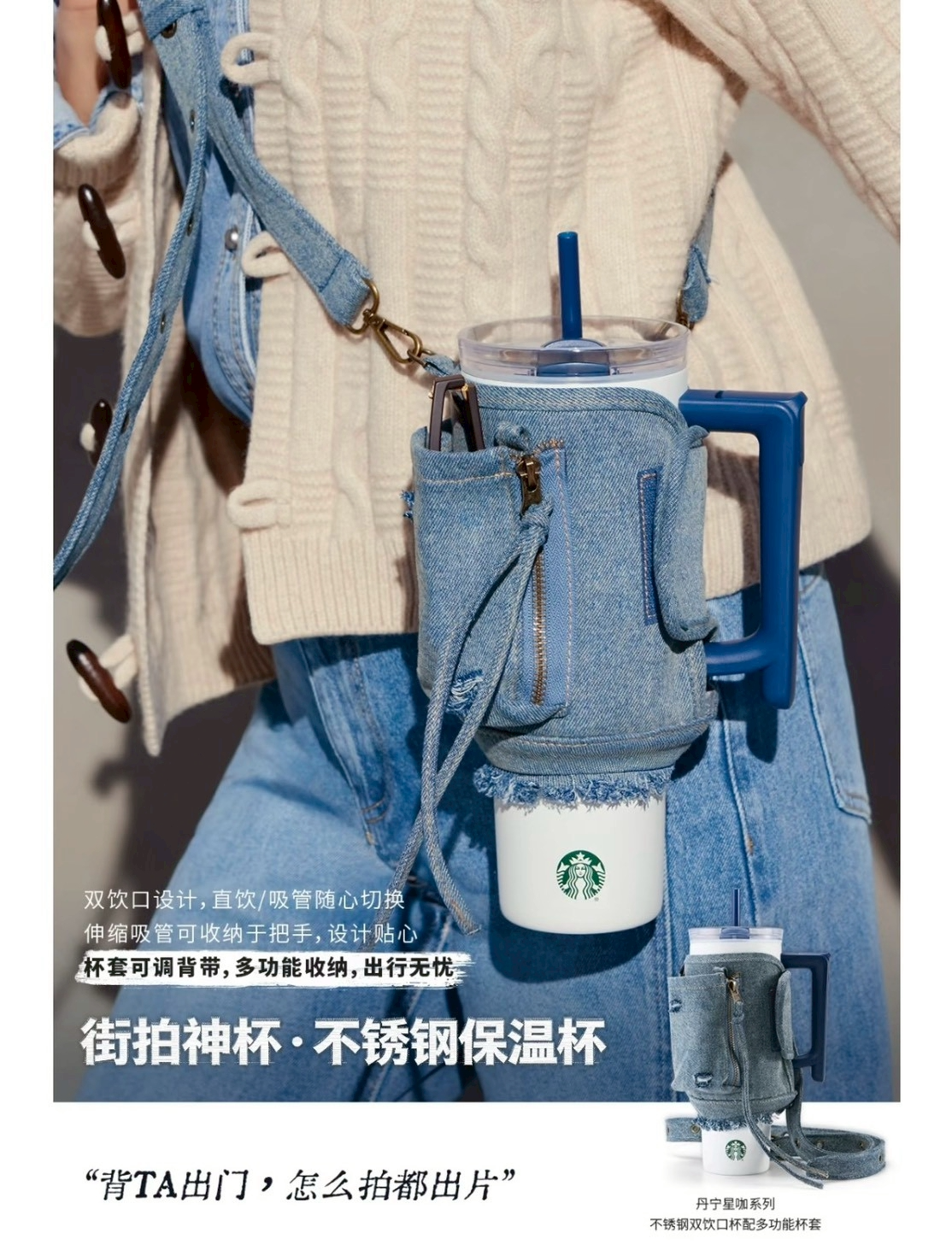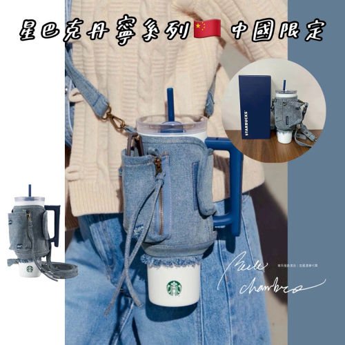 即將抵台🔥星巴克正品 丹寧杯套背袋+1180ml白色不鏽鋼冰霸杯✨丹寧星咖系列 中國限定 2026 3月新品