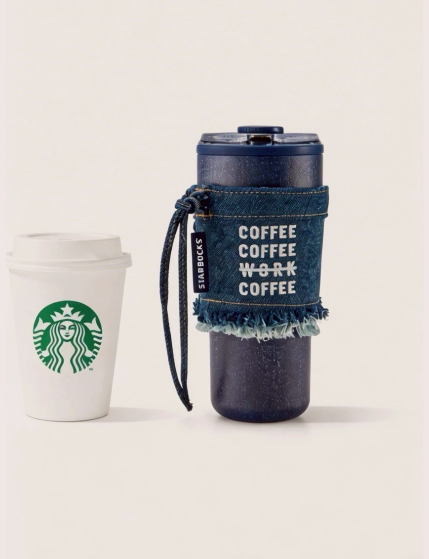 即將抵台🔥星巴克正品 丹寧刺繡流蘇金屬鏈杯套+620ml不鏽鋼丹寧印花保溫杯 ✨丹寧星咖系列 中國限定 2026