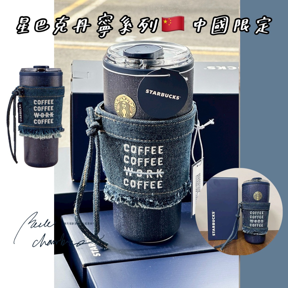 即將抵台🔥星巴克正品 丹寧刺繡流蘇金屬鏈杯套+620ml不鏽鋼丹寧印花保溫杯 ✨丹寧星咖系列 中國限定 2026 3月新品
