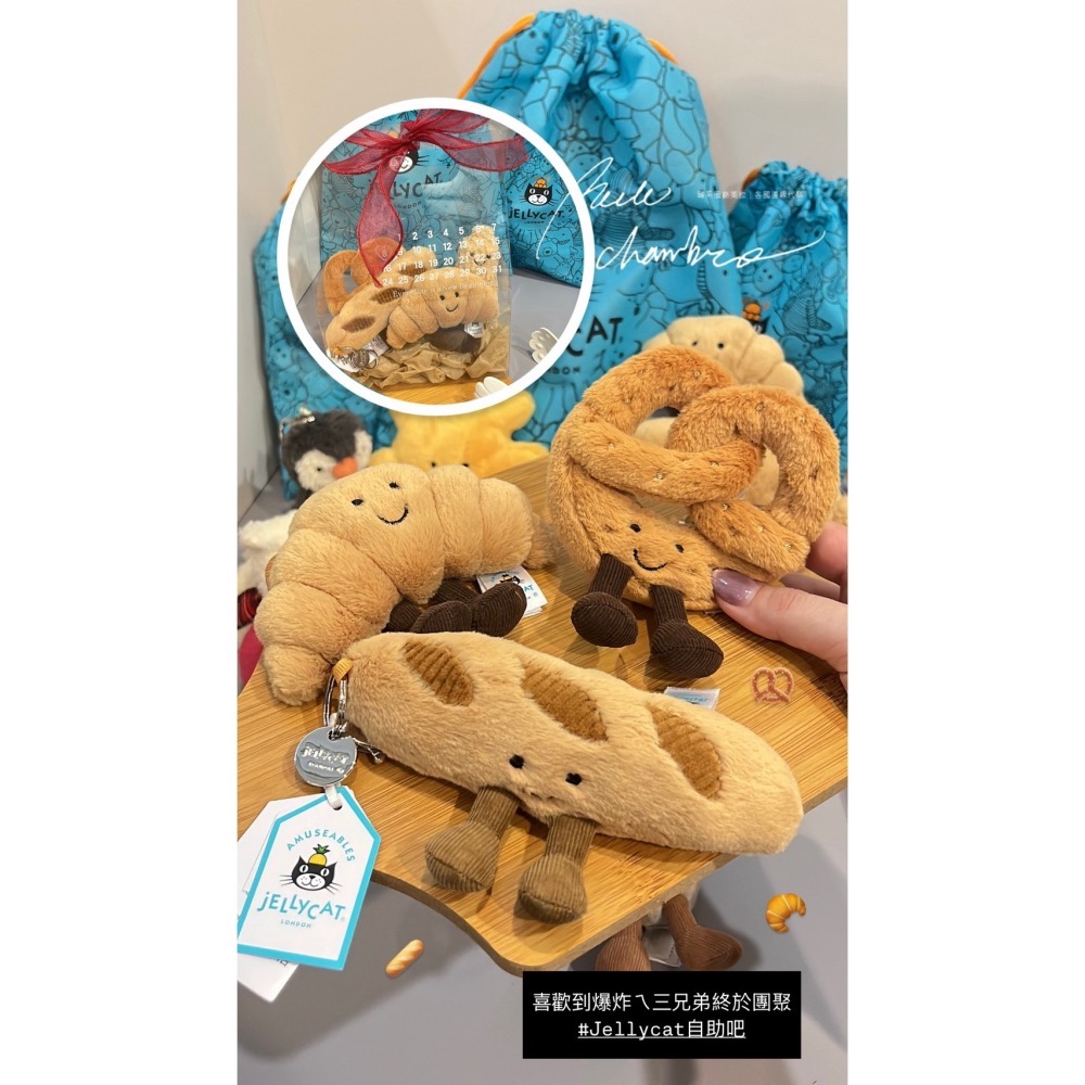 台中正品現貨 Jellycat 麵包三兄弟 可頌 德國捲 鹼水結 法棍 法國麵包吊飾 Amuseables Baguette Croissant Pretzel Bag Charm