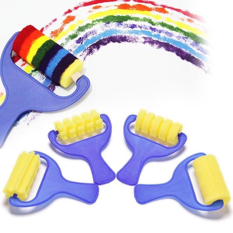 <台灣現貨 極速發貨> 海綿畫刷 顏料滾輪套裝4件套 印章兒童塗鴉diy早教美術材料 滾輪 美術 海棉滾輪 拓印 海綿畫