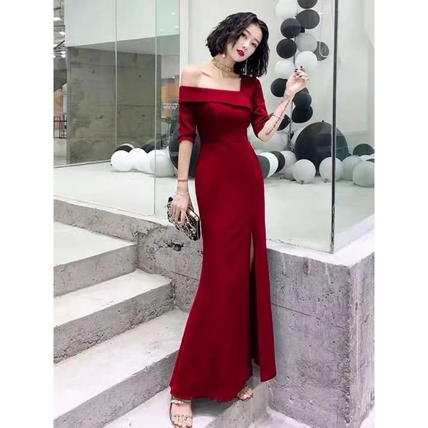 ❤️預購2-3週(S- 2XL) 中大尺碼 晚宴 高貴 女王 魚尾 主持人 開叉 敬酒服 氣質 長裙 婚宴 尾牙 禮服