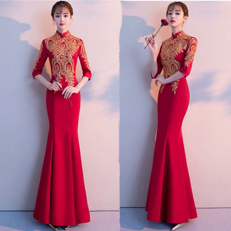 #現貨在台 #大紅 #xl #2XL #敬酒服 #新娘 #婚紗 #中國風 #中式 #魚尾 #旗袍 #禮服 #婚紗 #修身 #連衣裙 #長裙 #包臀 #婚宴