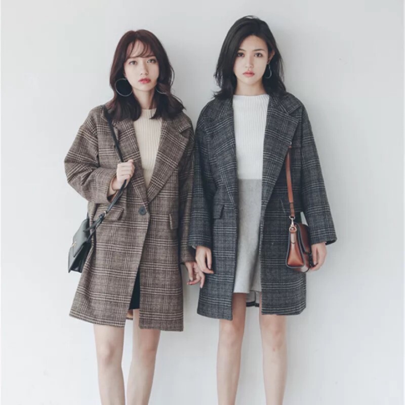 #實穿實拍 #大衣 #格子 #格子外套 #復古 #赫本風 #毛呢 #外套 #中長款 #韓版 #加厚 #類西裝 #寬鬆 #顯瘦 #女神 #開襟 #毛呢大衣
