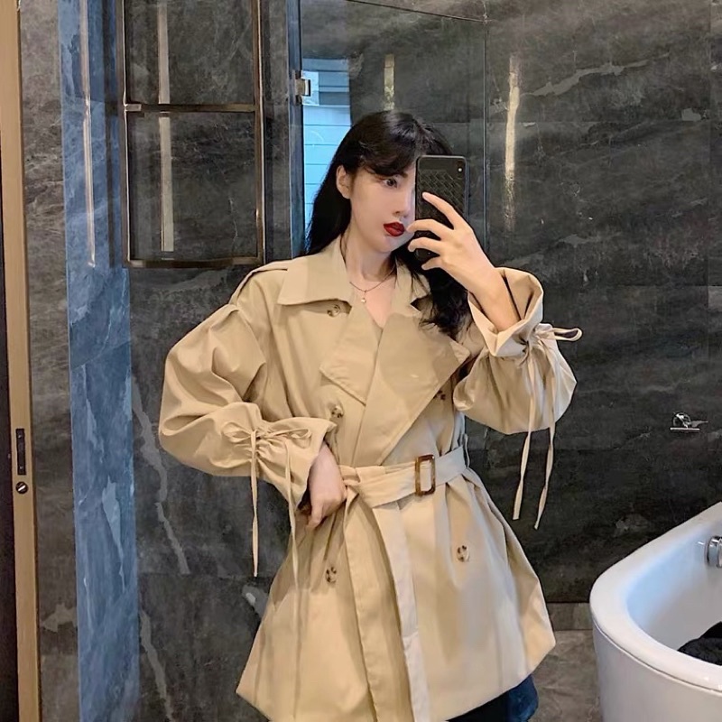 ❤️現貨在台,卡其.黑 帥氣 時尚 風衣 氣質 中長款 小個子 英倫風 收腰 外套