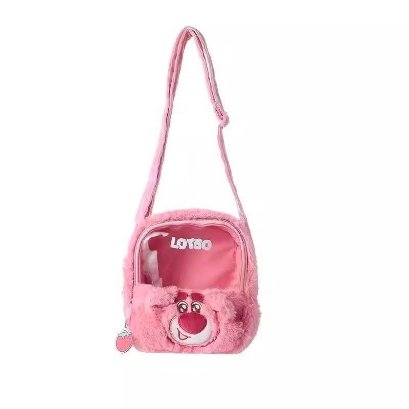 草莓熊毛絨斜挎痛單肩包 草莓熊包包