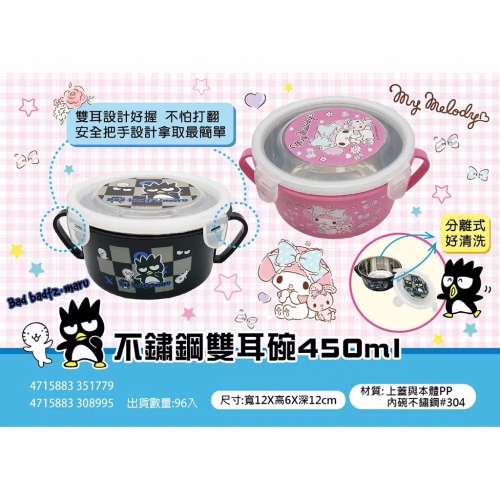 正版三麗鷗不鏽鋼雙耳碗450ml 兒童碗
