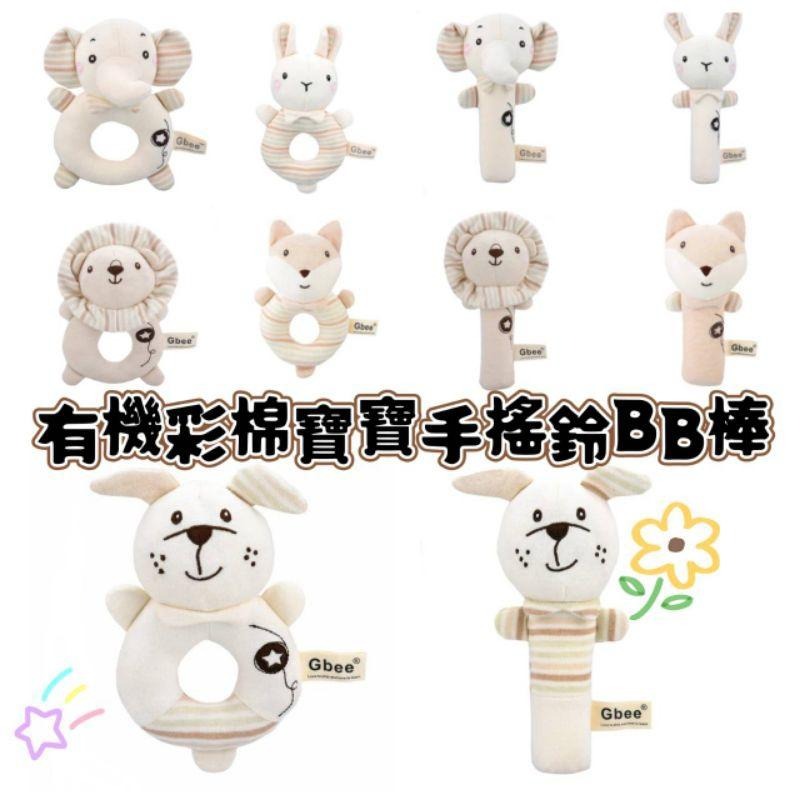 動物造型可愛手搖鈴BB棒 有機彩棉 多款可選 響紙 鈴鐺 BB器 安撫配伴 嬰兒床 玩具 手眼協調 抓握訓練