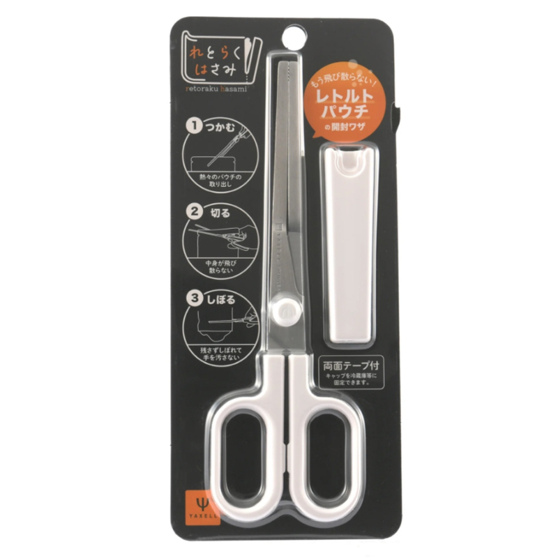 剪刀的尖端是鋸齒狀的,因此您可以很好地抓住袋子並安全取出。