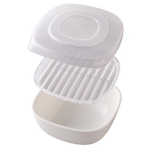 --- 產地:日本 材質:聚丙烯 容量:約430ml 耐冷:-20°C 耐溫:140°C --- 您知道日本米飯的保存秘訣嗎❓ 就是剛煮好的米飯🍚🍙,馬上就冷凍。 這樣回蒸或微波後才能吃到 澎軟Q彈的米飯,就像米飯剛出鍋一樣呢 平時我們在家保存米飯🍚🍙時, 用保鮮膜或飯碗保存的冷凍米在食用時用微波爐加熱後, 可能會導致水分過多或變乾,飯菜的味道也不好。 這款日本微波蒸飯盒🍚🍙, 可當冷凍儲存容器,可讓您在微波爐中解凍冷凍米, 微波後像新鮮煮熟的大米一樣蓬鬆。✨。 微波時翻轉飯盒,加一茶匙水💦, 並倒置送入微波爐加熱, 瀝水板將去除多餘的水分, 蒸汽將產生蓬鬆且耐嚼的表面。✨ 微波後重新加熱冷凍米飯🍚🍙, 讓米飯蓬鬆有嚼勁,讓冷凍米飯🍚🍙更美味! 採用簡約無印風格的微透感, 顏色清晰,更容易看到裡面的東西。✨ 外觀方形,最大限度地減少死角, 可以整齊地存放在冰箱中。; 蓋子的設計易於堆疊。 不只可以微波米飯🍚🍙 您可以使用瀝水板加熱燒賣或享用簡單的蒸蔬菜。 就像剛蒸好的一樣,一點也不乾‼️ 還也可以將其用作餐桌上的碗。 可說是超級多功能呢