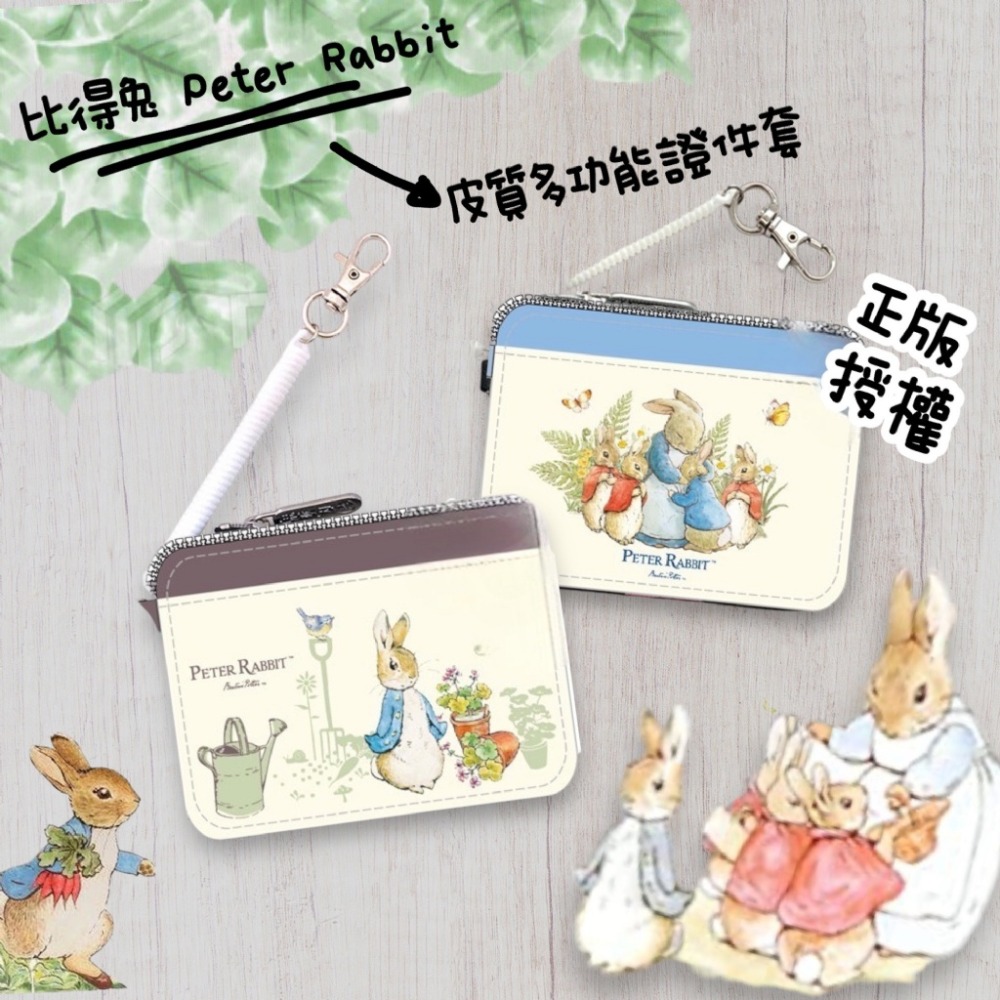 正版授權~Peter Rabbit 比得兔 多功能拉鍊票夾證件套(附彈力掛勾)