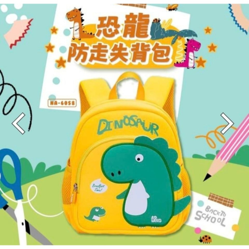 一防走失設計 , 家長安心 : 配備可拆卸防走失繩 方便家 長在戶外活動中緊握孩子 避免走散 : 提供更多的安全感 可愛恐龍造型 吸引孩子目光 以可愛的恐龍設計為主 L 、 -.