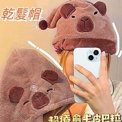 小編真的超級愛這款 呆萌卡皮巴拉乾髮帽套裝 以吸水量大心柔軟透氣