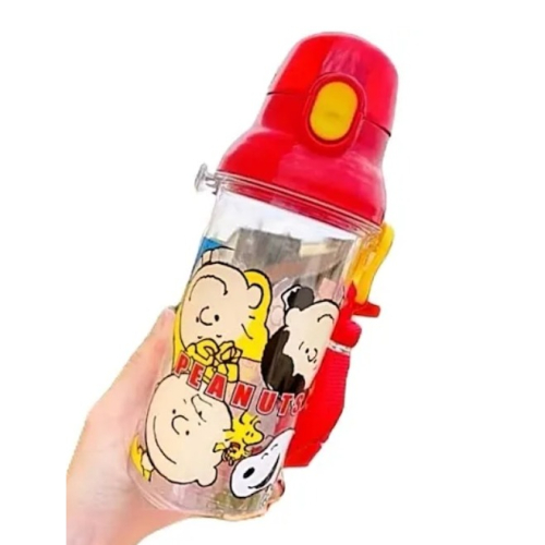 史努比 日製透明直飲式水壺附背帶《紅.角色大臉》480ml.水瓶.兒童水壺