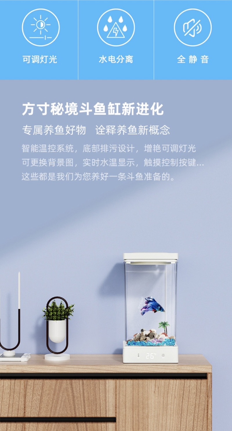 【宿水亭】『台灣當天出現貨』 鬥魚缸 智能鬥魚缸 方寸秘境 辦公室魚缸 書桌魚缸 養魚專用迷你水族箱