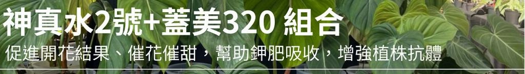 葉噴:神真水2號稀釋400~800倍,蓋美320稀釋500~1000倍,開花或結果時7~10天使用一次。
