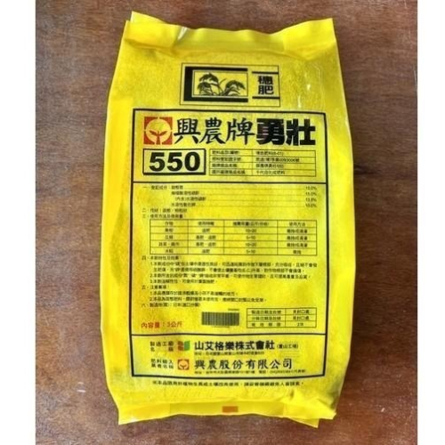 🔹勇壯550的氮(N)-磷(P)-鉀(K)成分為15-15-10,為中性複合即溶肥,讓植物快速吸收成長,適合使用各種植物,可搭配本公司微生物肥料,效果更好。