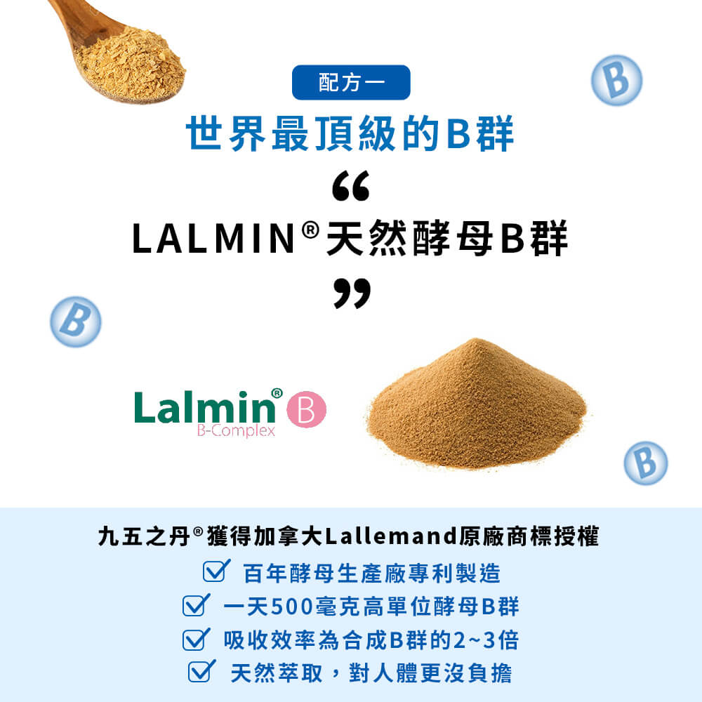 男版成份:天然酵母萃取物 (含維生素B1、維生素B2、維生素 B6、維生素B12、生物素、葉酸、菸鹼酸、泛酸)、天然酵母鋅