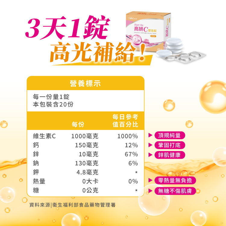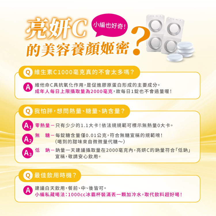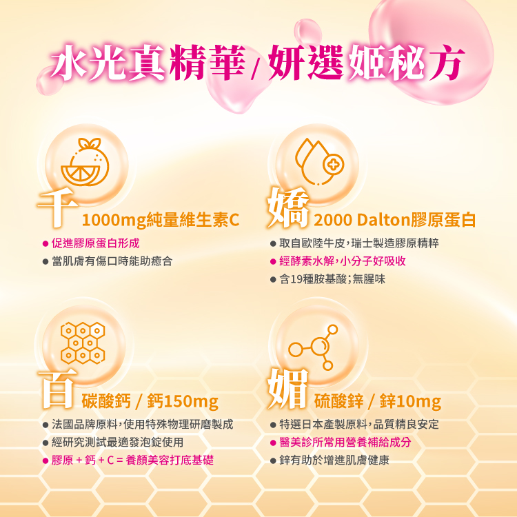 成分:維生素C(1000mg)、碳酸鈣、膠原蛋白、硫酸鋅