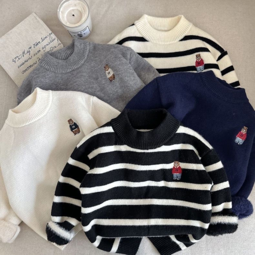 小熊刺繡設計可愛不突兀 內裡刷毛 穿起來是不會感覺刺刺的 小孩穿得舒適開心 家長也開心𖤐