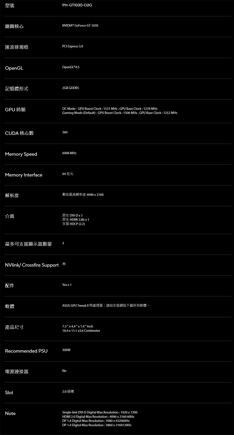 ASUS 華碩 PH-GT1030-O2G 顯示卡 Phoenix GT1030 2GB