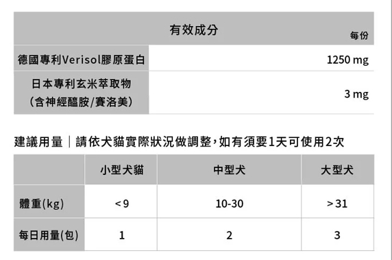 寵物保健品首度獲得日本原廠授權,達到有效實證劑量添加。專利原料並在日本獲得超過50位醫師推薦使用。