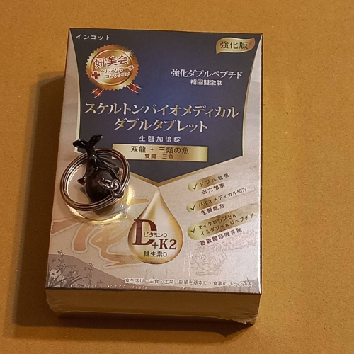 成分:雞膠原蛋白(雞胸軟骨萃取物、木瓜酵素)、甲基硫醯基甲烷(MSM;甲基硫醯基甲烷、二氧化矽)、玉米糖漿粉、乳糖、海藻鈣、硬脂酸鎂、聚乙烯吡咯烷酮、鱘龍魚膠原蛋白粉、鯊魚軟骨粉、鱷魚骨萃取物、鷹嘴豆萃取物【含維生素K2;微結晶狀α-纖維素、中鏈三酸甘油酯、鷹嘴豆萃取物】、土龍粉、蛋黃粉、雞肉萃取物(含咪唑二肽;雞肉萃取物、糊精、玉米澱粉、食鹽)、維生素 D3【辛烯基丁二酸鈉澱粉、蔗糖、L-抗壞血酸鈉(抗氧化劑)、中鏈三酸甘油酯、二氧化矽、DL-α-生育醇(抗氧化劑)、維生素 D3】、鰩萃取物。
