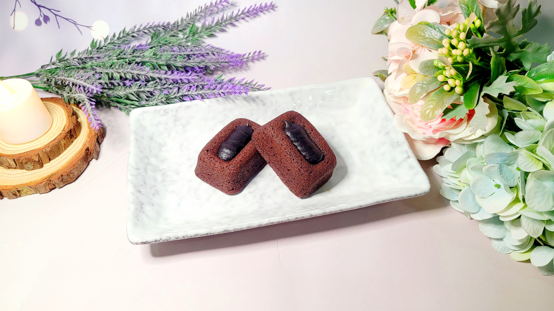 凹朝處填滿苦甜巧克力甘納許