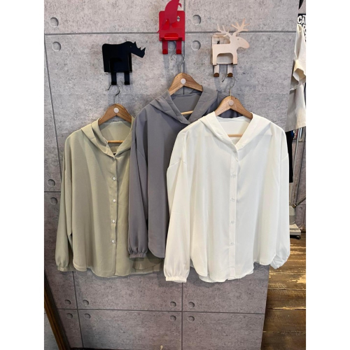 雪紡材質連帽襯衫(灰色)