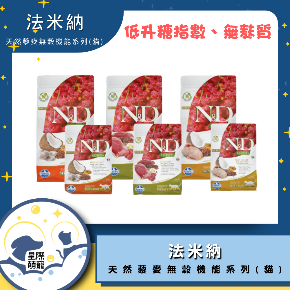 N&D天然藜麥無穀機能系列是針對有特殊營養需求的犬貓設計,一個全新的保健系列食品。本系列不含穀物,以特殊且超過90%的動物性蛋白質來源製成,搭配豐含珍貴營養特性的「超級食物」-藜麥,可以完美支持毛孩的健康。