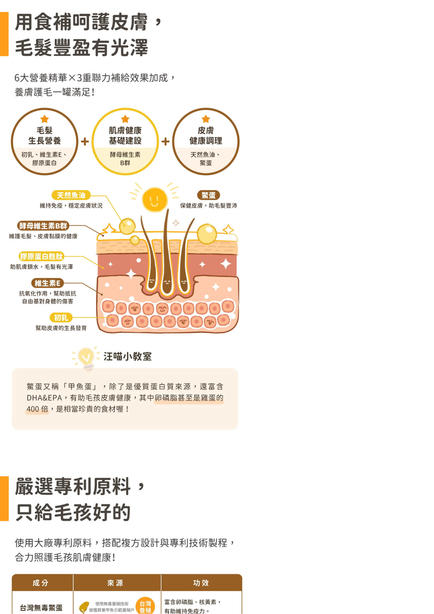 • 天然鱉蛋 x 五大國際專利原料,讓毛孩皮膚健康、毛髮濃密。