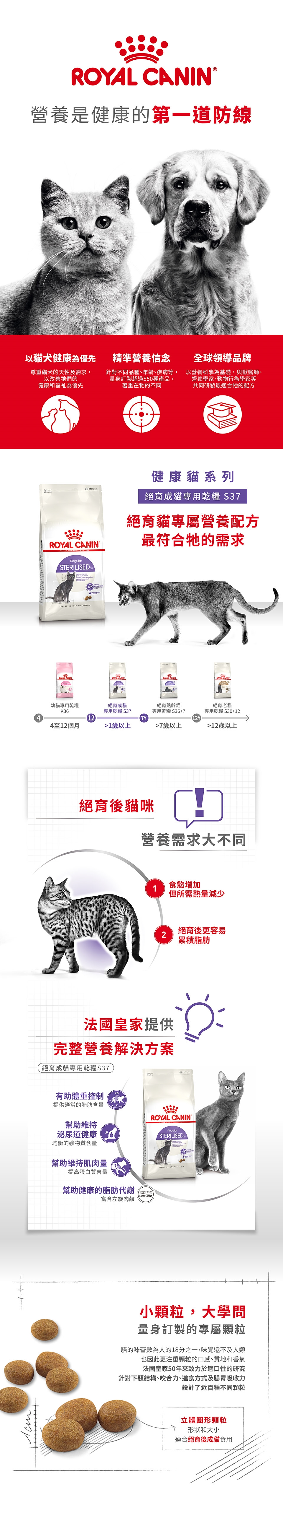 【星際萌寵】皇家 | 絕育成貓專用飼料S37 2kg貓飼料