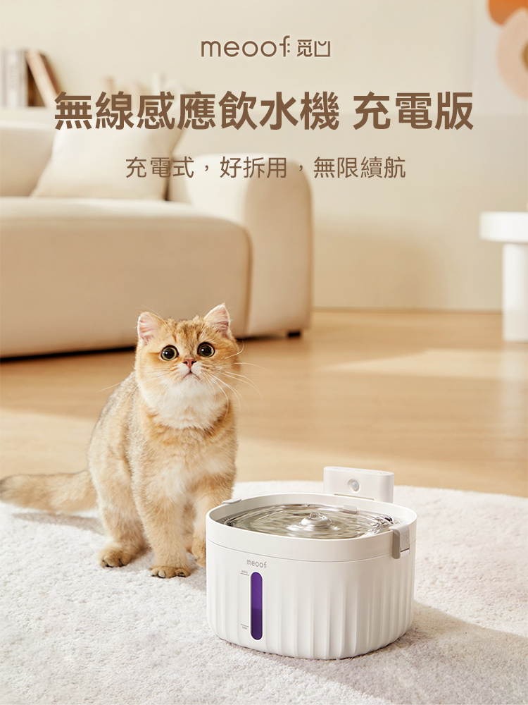 【星際萌寵】meoof | 無線感應飲水機充電版(不鏽鋼款)寵物智能產品
