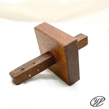 師傅將常用的四種榫孔規格設定於腳桿上,固定榫孔寬距,不需經常更換,避免榫孔寬距因調整過程而失準。