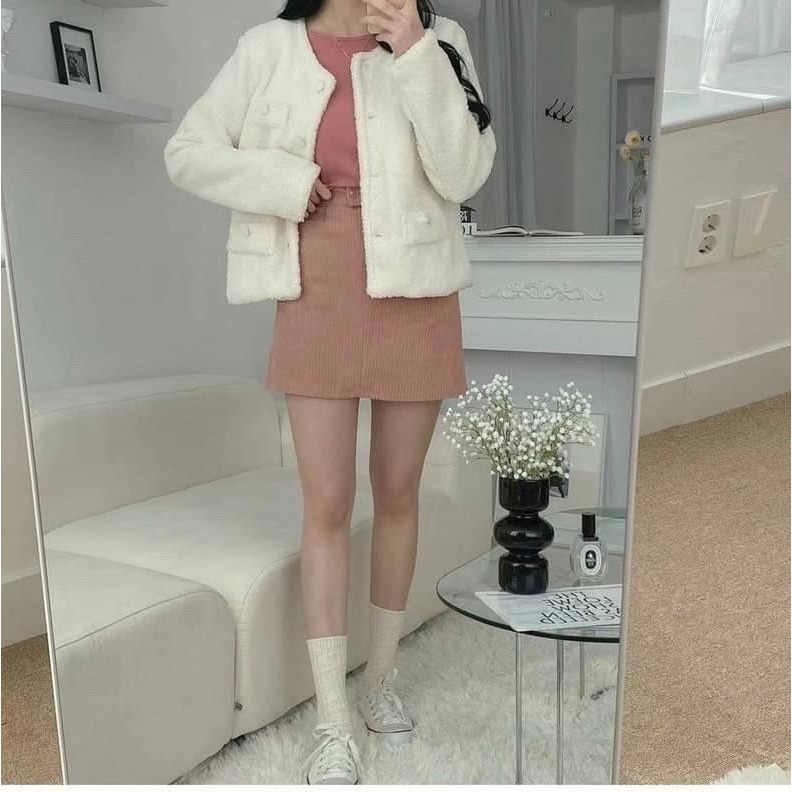 ✔️圓領設計增加了整體的優雅感,羊羔毛質地質感十足,提供了優越的保暖性能,立體舒適版型使它成為百搭的單品,溫柔氣質有質感
