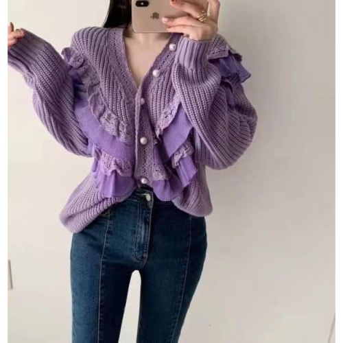 🇰🇷波浪蕾絲珍珠釦針織衣