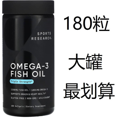 免運✅魚油🐠Sports Research Omega-3深海魚油膠囊🐟1250mg 180粒 野生阿拉斯加鱈魚油DHA