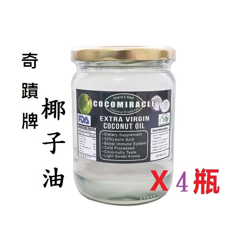 【三色貓】奇蹟牌椰子油4瓶●100%第一道頂級冷壓椰子油 可以食用、漱口、按摩油、護唇膏、助曬油、嬰兒油、護髮油