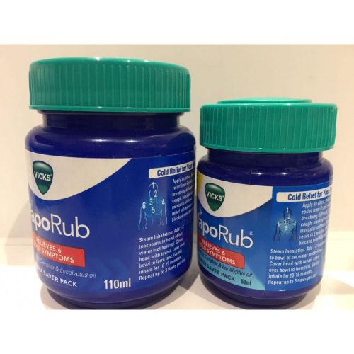 品名: “維克斯舒緩薄荷膏”(Vicks Vaporub)50g 照片2是“衛生油”使用方式與Vaporub類似 照片3是“Vicks通鼻筒” 此商品外面貼紙的設計常常換,所以可能跟刊登的照片不同,但是內容物都是相同的。 賣場裡合購滿1000元.....一律免運費 !! ★保存期限 每批更新請安心購買 #Vaporub #薄荷膏 #Vicks