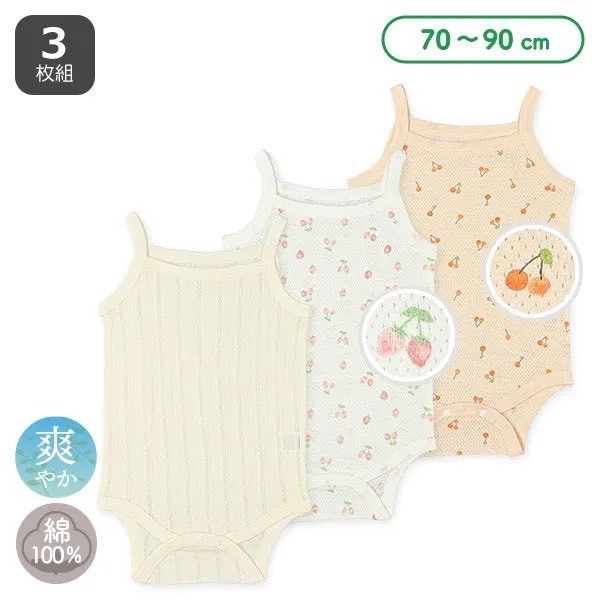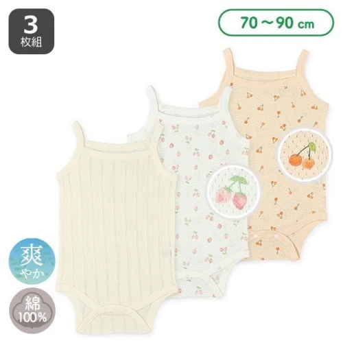 日本西松屋|草莓櫻桃網眼無袖包屁衣-三件組 童裝 日本代購