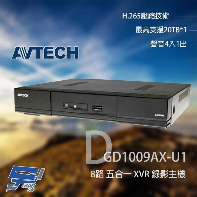 昌運監視器 AVTECH 陞泰 DGD1009AX-U1 8路 五合一 XVR主機(DGD1009AIXI-U1出貨)
