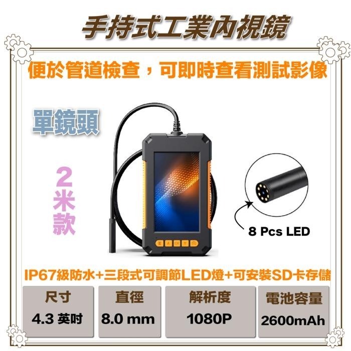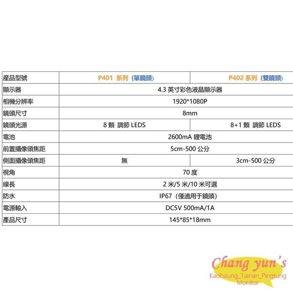 昌運監視器 P401-802 手持式工業內視鏡 線長2米 單鏡頭 200萬畫素(以5米升級出貨)