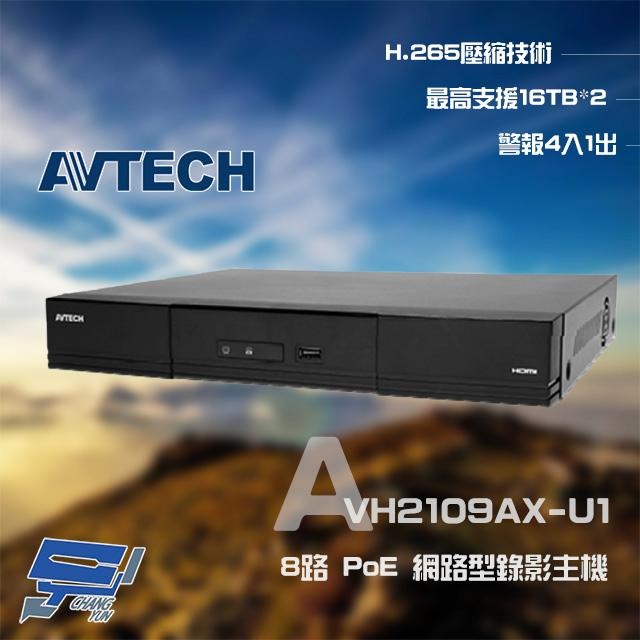 昌運監視器 AVTECH 陞泰 AVH2109AX-U1 8路 PoE H.265 NVR 網路型錄影主機(請來電洽詢)