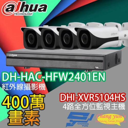 昌運監視器 大華監視器套餐 DHI-XVR5104HS主機+DH-HAC-HFW2401EN攝影機*4