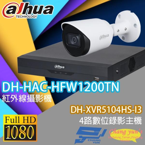 昌運監視器 大華監視器套餐DH-XVR5104HS-I3 4路主機+DH-HAC-HFW1200TN 200萬鏡頭*1
